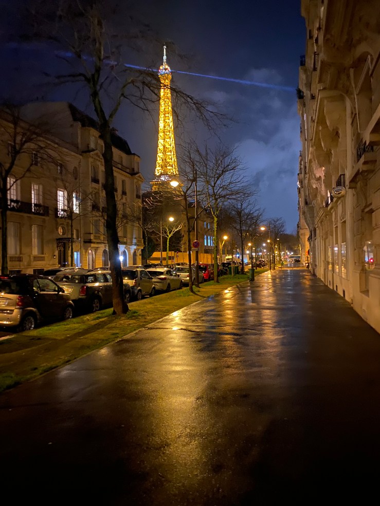 This was the first time I had randomly stumbled upon the Eiffel Tower without planning to see it. The golden glow of the tower, illuminating the rain-soaked streets of Paris, felt too romantic to keep to myself.