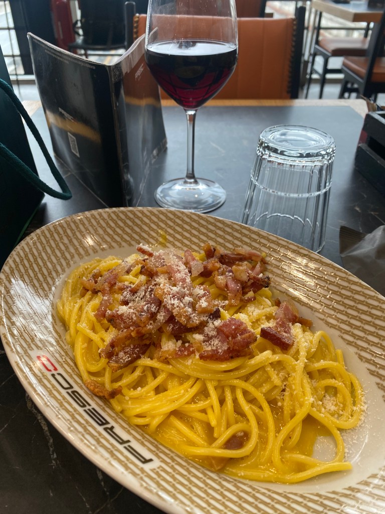 At Termini Station, I had an extremely salty plate of carbonara. Since my stomach was empty, even a single glass of red wine left me feeling slightly tipsy. Afterward, I made my way to my hotel near the Spanish Steps. I was surprised to find the area lined with luxury brand shops.