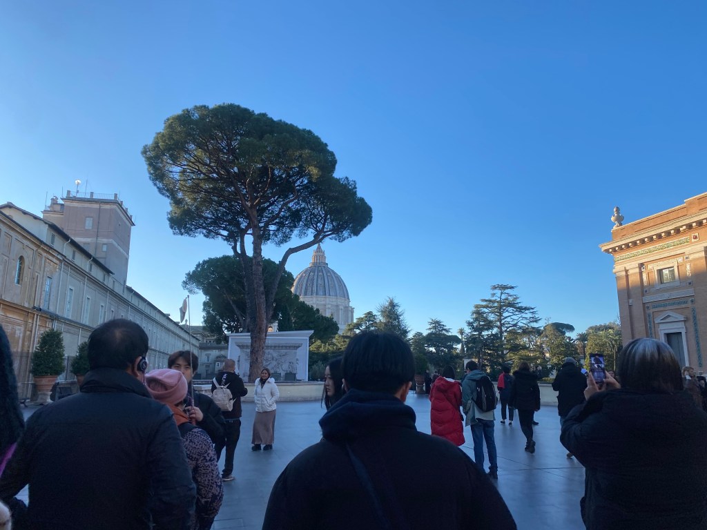 I quickly contacted the tour company, and they instructed me to head to the Vatican entrance. While making my way there, a Korean man approached me, saying he had also booked a Vatican tour but was late. Thank goodness, I thought, relieved to have someone to walk with. After about 3–4 minutes of walking, we found our guide and the rest of the group and entered the Vatican together.
