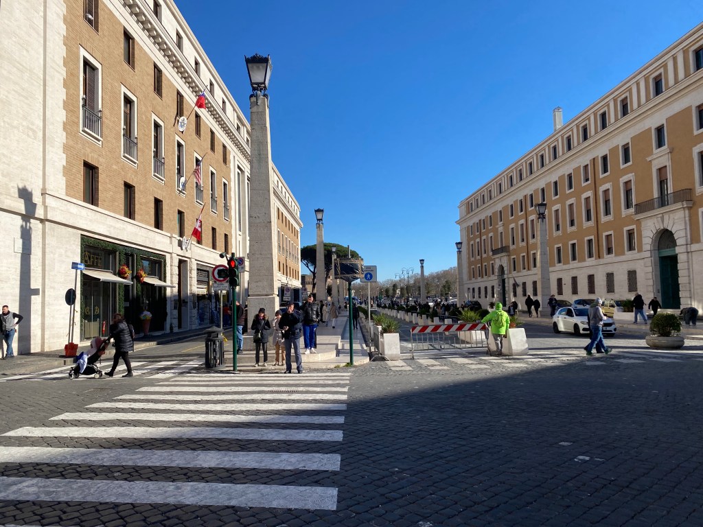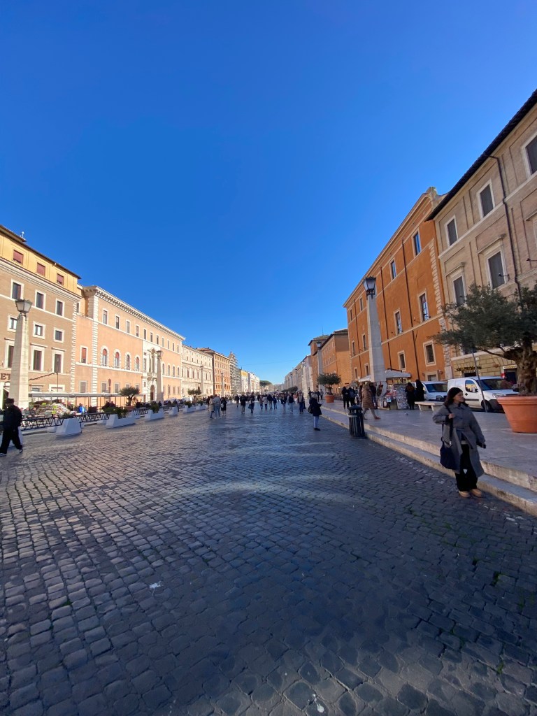After the southern Italy tour on my third day in Rome, I arrived late at my hotel and fell asleep immediately. Waking early, I prepared diligently to head to “a small country” (as they say, haha) and arrived at the meeting point near the Vatican at around 6:32 AM. The designated meeting time was 6:30 AM, so by the time I got there, no one else was around.
