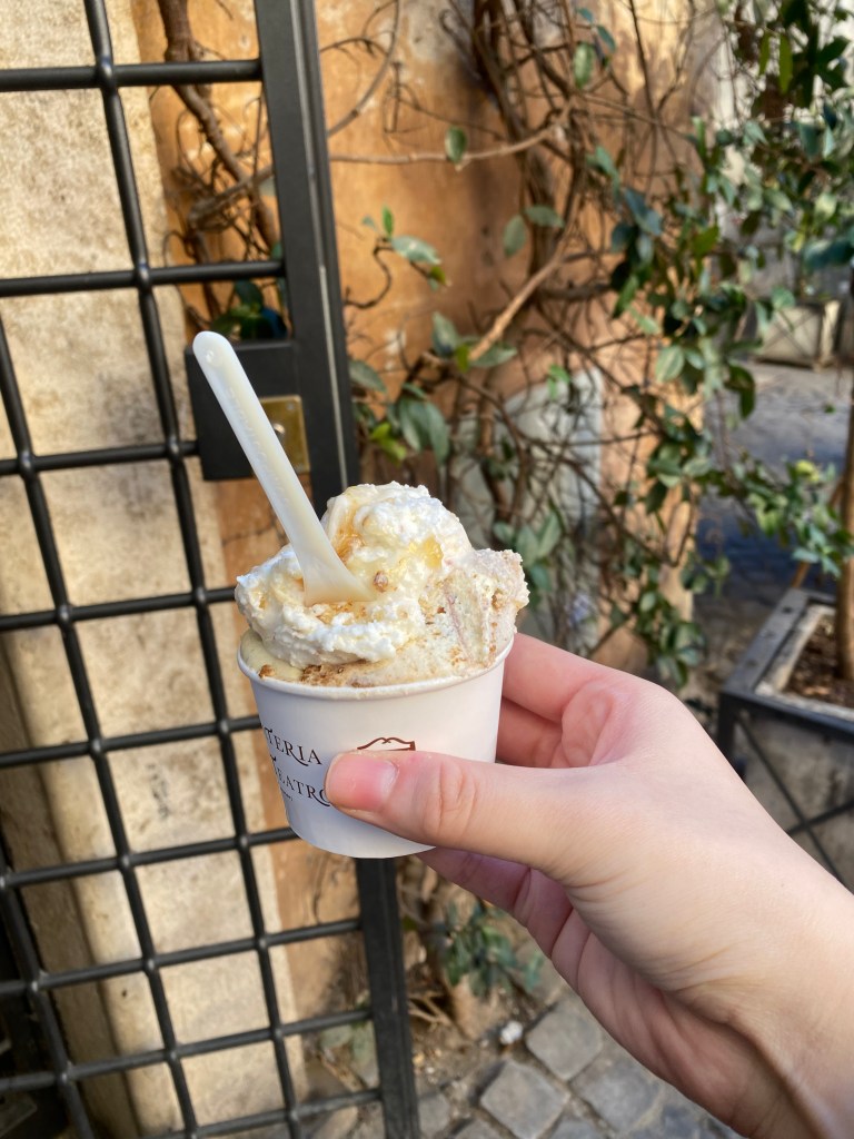 이국적인 풍경, 아름다운 골목길, 여유로운 사람들, 파스타, 피자, 파스타, 피자, 젤라또, 가게를 여러 군데 지나쳐 가다가 이탈리아에 도착한 이후 젤라또를 한번도 먹지 않았다는 걸 깨달았다. 그래서 깔끔해 보이는, 그리고 손님이 이미 몇 팀 있는 젤라또 가게에 들어가서 피스타치오, 허니, 그리고 치즈 ? 맛이 추가된 젤라또를 구매하였다. 근데 이런 말 해도 될지 모르겠지만 맨하탄 리틀 이탈리 축제할 때 가서 먹었던 젤라또가 더 쫀득하고 맛있었다… 그래도 일반 아이스크림보다는 맛있어서 그러려니 했다. 그래, 이런 아쉬움을 남겨둬야 다시 로마에 올 수 있지 않겠어? (젤라또 먹으러..?)