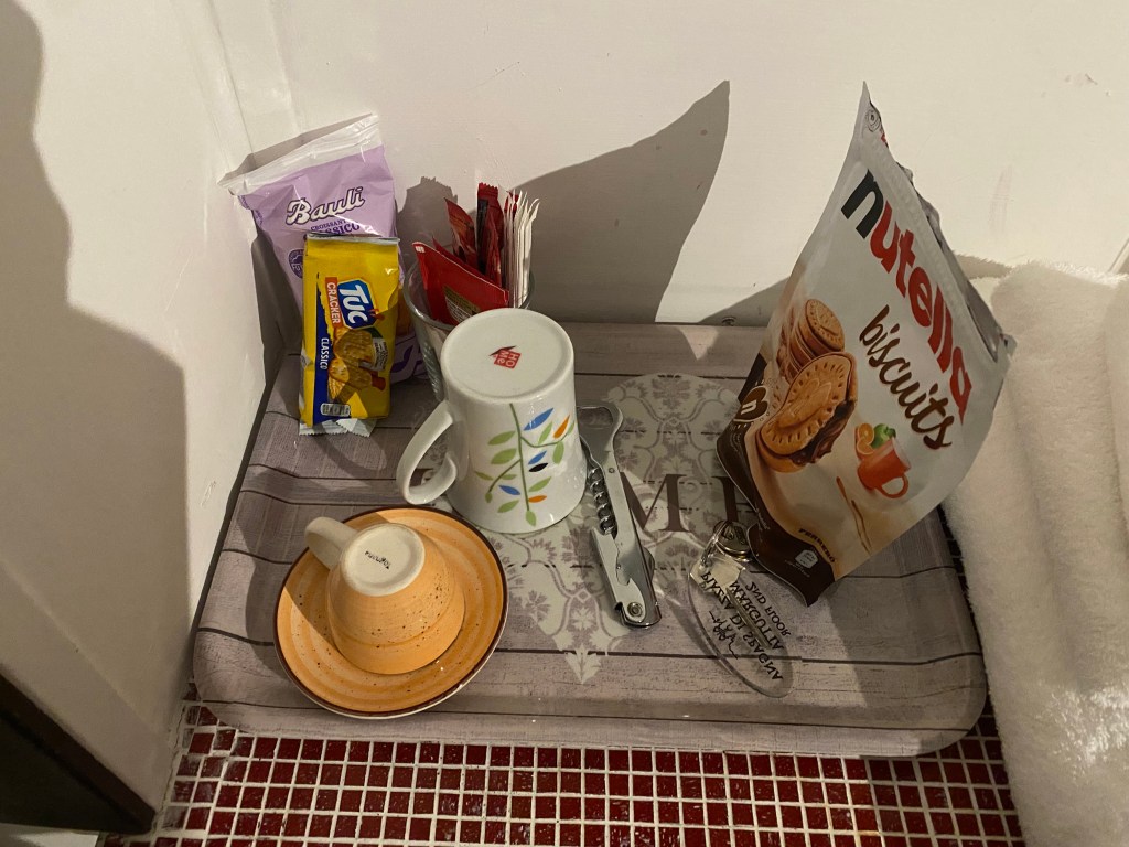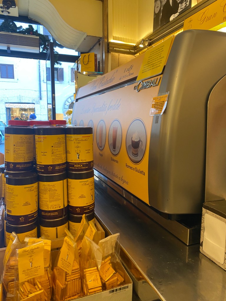 Leaving what I think might be the friendliest restaurant in Rome, I felt like I needed coffee to sober up. I checked the guide’s list of restaurants and cafes again and found a cafe he had highlighted, also near Piazza Navona. After a short three-minute walk, I spotted a yellow cafe with a long line outside. It turned out to be one of the top three coffee shops in Rome. Without realizing its fame, I ordered a double espresso and impulsively bought some roasted coffee beans I saw on display. Later, when I brewed the beans at home, I found the flavor to be unusual—a slightly sharp, tangy aroma—but not bad.