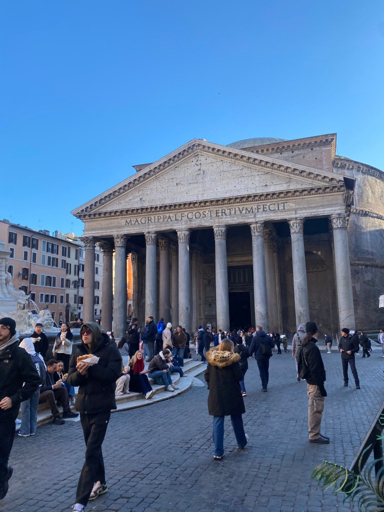 After the coffee, I made my way toward the Pantheon. I won’t go into detail about the general information surrounding the Pantheon, but I will share my thoughts about it. I didn’t expect to see the Pantheon as I was walking. Turning a corner in a narrow alley, it suddenly appeared on my right, and I was stunned. The Pantheon’s grandeur is impossible to take in all at once. Standing in its presence feels like experiencing a distortion in space and time. It doesn’t even feel like something humans could have built.