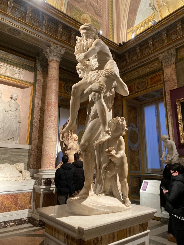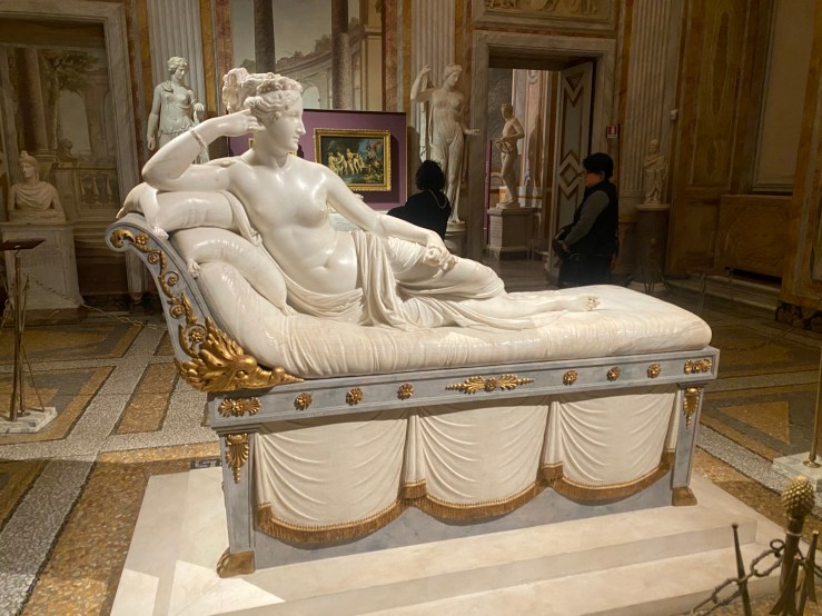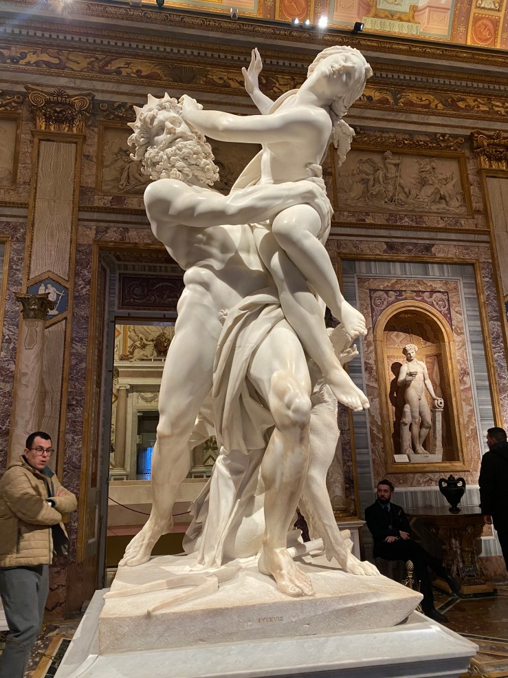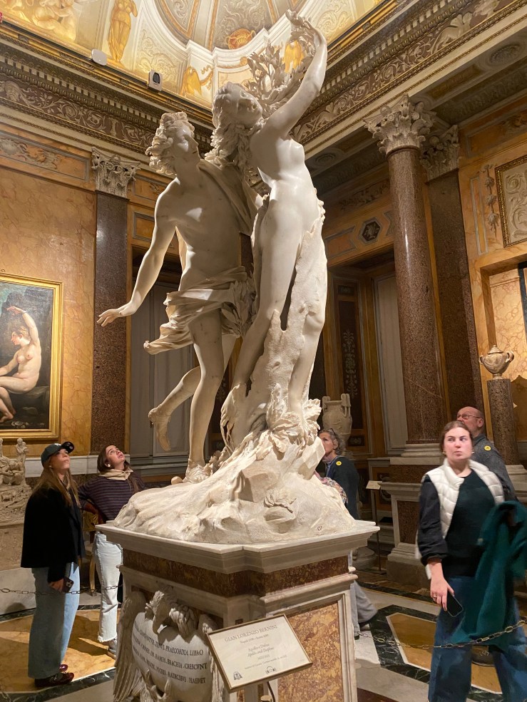 At 5 PM, we entered the Borghese Gallery. The gallery has a unique system—unlike larger museums, it’s relatively small, and visitors are only allowed to stay for a fixed time of two hours. You even hear announcements inside, reminding people when their time is up. For example, visitors who entered at 4 PM are told to leave by 6 PM.