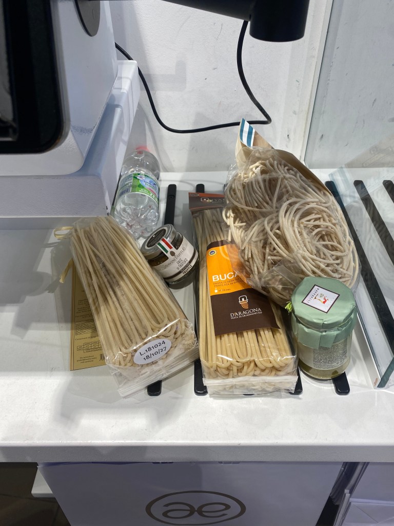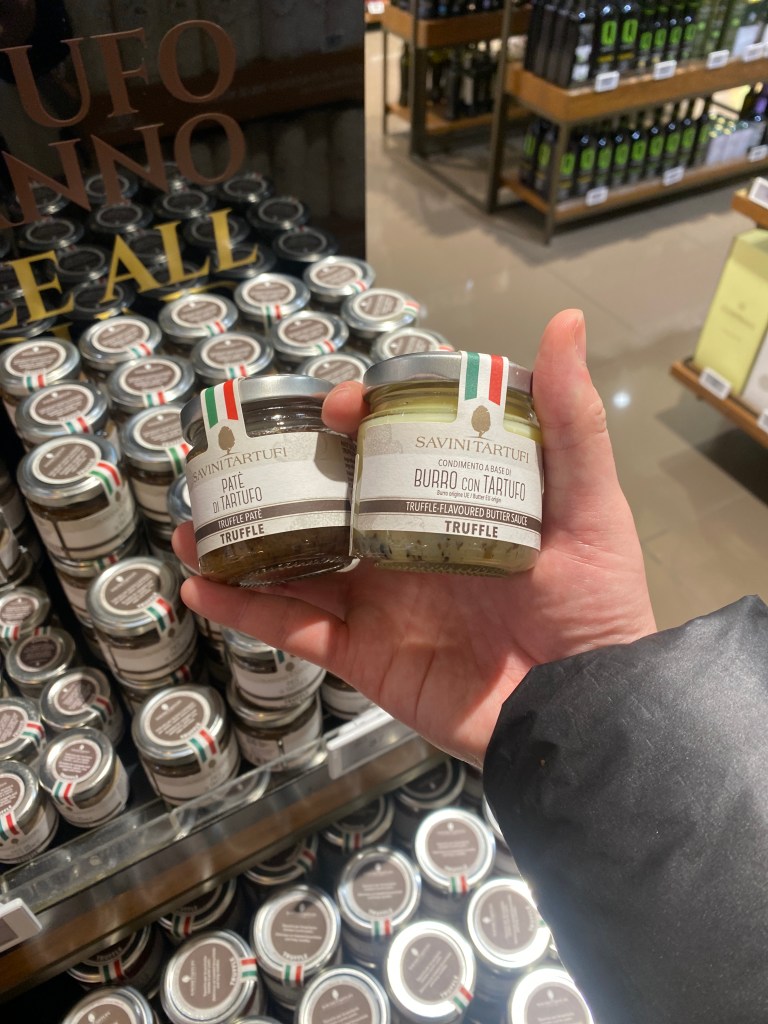 The next day, I arrived at Rome Airport much earlier than necessary, so I spent some time browsing the duty-free shops. As expected from the country of pasta, there were endless shelves of pasta, truffle pesto, olive oil, and various other food items. I had loved the thick pasta I tried in Rome so much that I bought three packs of something similar. Still inspired by the truffle pasta I had the night before, I thought to myself, I’m going to become a chef too! and ended up buying a small jar of truffle pesto. The price was brutal—it was truffle, after all—coming to 37 euros.