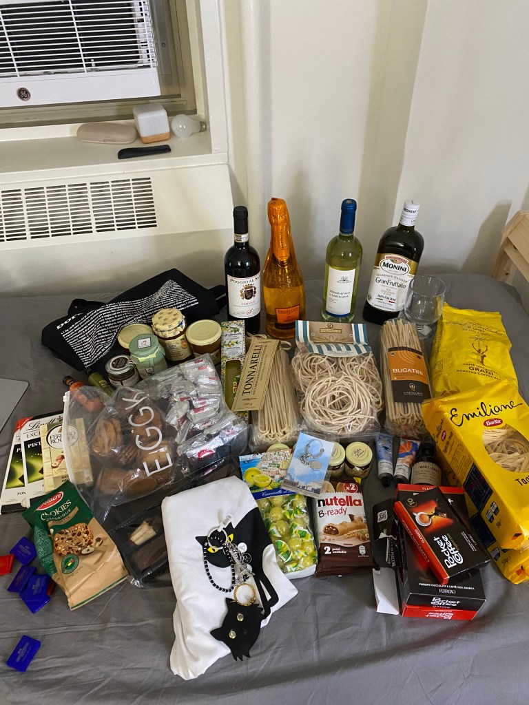 I arrived in New York on a Wednesday afternoon, but honestly, I can’t recall much about that week. The three freezing days in Paris, the grueling schedule of tours in Rome—they had all left me utterly drained. Even though I slept like crazy on the plane, it clearly wasn’t enough. I remember just sleeping whenever I had the chance. I didn’t have the energy for anything productive. At some point, I gave my roommate a jar of jam I had bought in Paris. Seeing how much they liked it made me happy. I love sharing small things—chocolates, candies, beauty samples, miniature perfumes, hand creams, and so on. I think giving small gifts creates little events in people’s everyday lives.