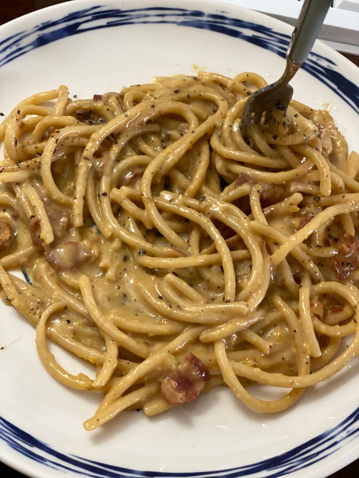 Back home, I made carbonara using egg yolks and Parmigiano Reggiano for the sauce. Instead of my usual 99-cent Target pasta, I used the Roman-style pasta I’d bought at the airport in Italy. Unfortunately, it didn’t turn out as well as I’d hoped. The instructions said to cook the pasta for 15 minutes, but I think my heat was too low because the noodles were undercooked. After eating the pasta, I poured a Sapporo beer into the Eiffel Tower glass I’d bought in Paris. Looking at the glass made me miss Paris, and memories of my time there flashed through my mind like a panorama.