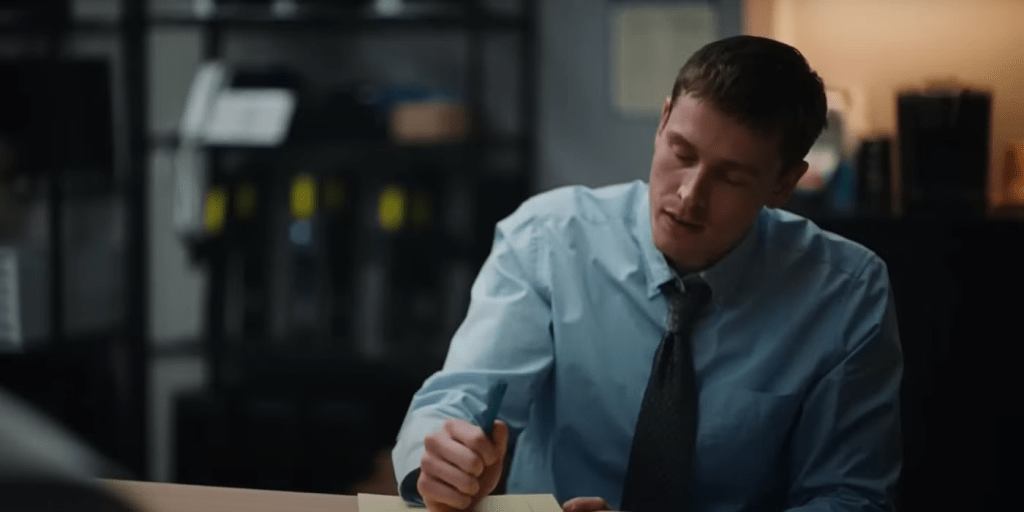 Later, Romy asks Samuel to bring her coffee and, in passing, inquires how he was able to handle the large dog so effortlessly. Samuel casually responds, “I always carry cookies with me. Want one?” Romy, without hesitation, firmly refuses. This moment invites us to revisit the earlier scene where Samuel subdues the dog.